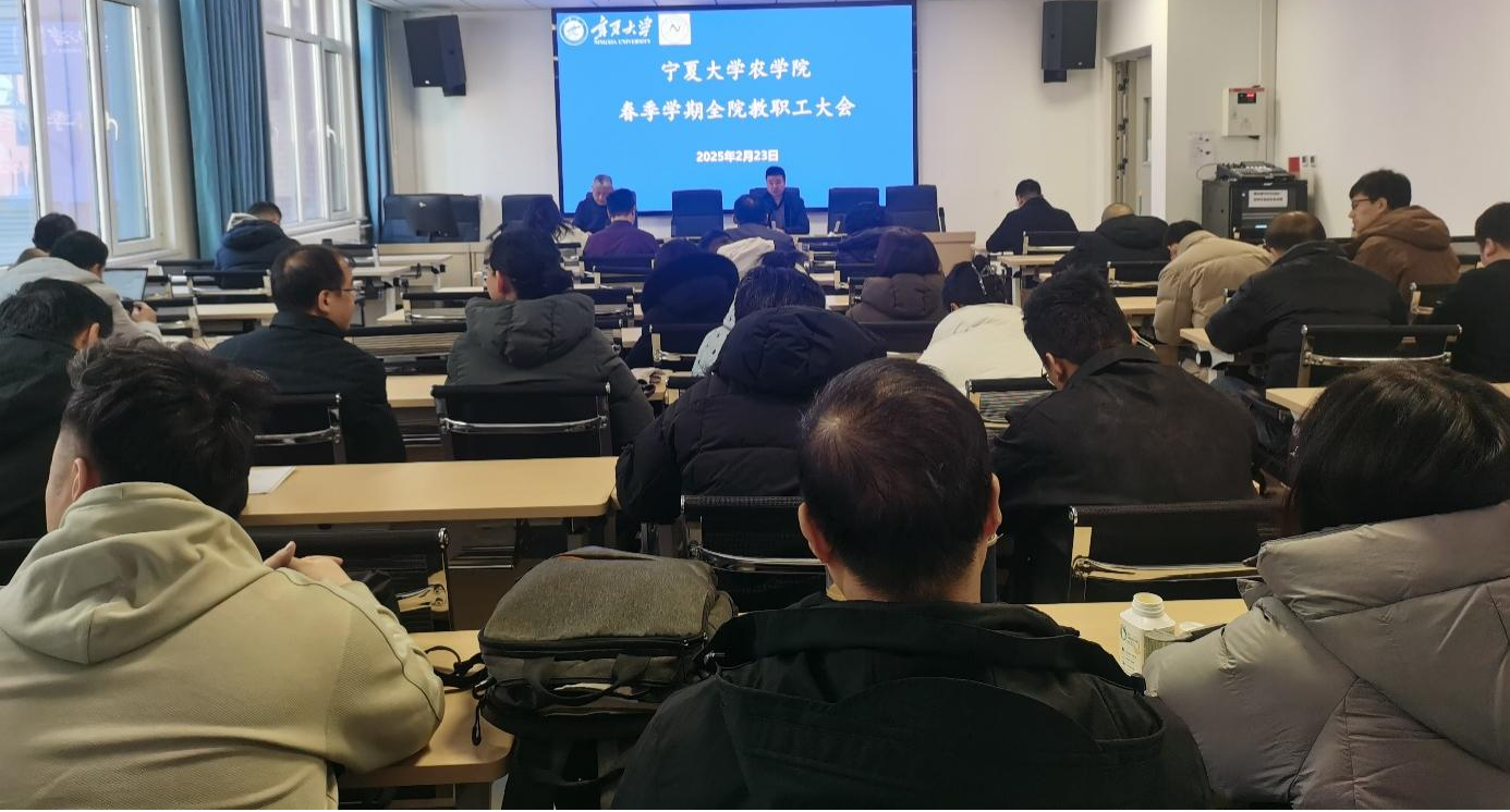 【英国上市365官网 王新谱/文/图】2月23日上午,2025年春季学期开学之际,英国上市365官网于朔方校区新农科大楼223会议室召开全院教职工大会暨政治理论学习会。会议由院长李培富主持,全体教职工参加了本次会议。会议伊始,党总支书记葛志军领学了习近平总书记在二十届中央纪委四次全会上的重要讲话、2025年自治区政府工作报告和全区教育工作会议暨全面从严治党工作会议精神,传达了学校春季学期干部教师大会精神,通报了学院2024年度党员领导干部民主生活会相关情况,以国家基金委通报的典型案例开展了师德师风警示教育,并就师德师风专项巡察整改落实提出了具体的要求。葛志军强调,全体教职工要认真学习领悟习近平新时代中国特色社会主义思想和系列重要讲话精神,切实将其转化为改革创新推动工作的强大动力,紧紧围绕自治区重大决策部署和学校重点工作任务,认真履职尽责,充分发挥学院在人才培养、科学研究和社会服务方面的优势特色,在保障国家粮食安全和助力乡村全面振兴的伟大实践中奋发有为建功立业。随后,李培富院长通报了寒假期间学院相关工作开展与推进情况,并对英国365官网落实学校2025年度重点工作任务进行了整体安排部署,要求全体教职工务必尽快从“假期模式”转入“工作模式”,以积极饱满的工作热情投入到新学期各项工作中,确保学院各项工作顺利开展,再上新台阶。此外,学院分管领导还就教学工作、人才培养、实验室安全、科学研究、学位点建设等重点工作进行了具体的安排和部署